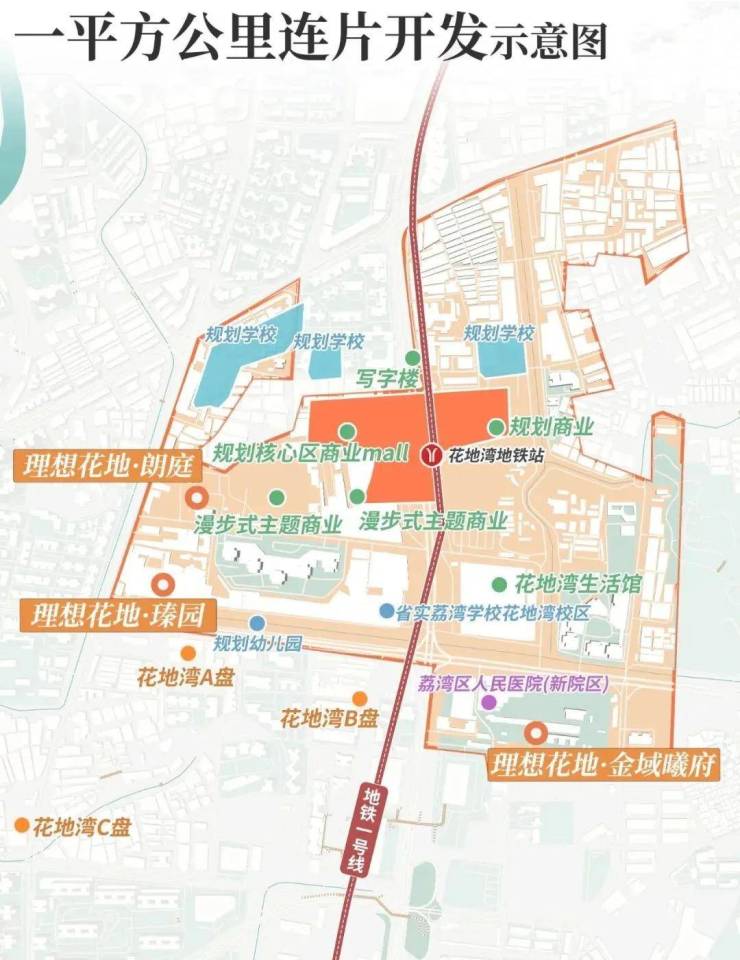 从项目步行到地铁1号线花地湾站大概3-400米,听说地下预留了通往地铁的通道,以后不怕风吹日晒雨淋,对上班族来说很舒适。(百度地图直线距离)