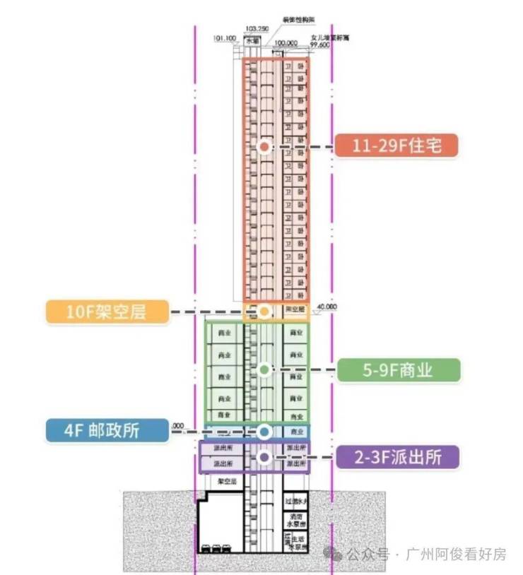 占地仅1321㎡,容积率14.4,绿化与公共空间有限;2-5层为派出所、邮政局,可能影响居住纯粹性。
