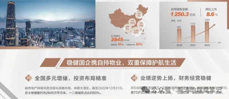 【2022年销售额1250.3亿,蝉联广州TOP1;2023年TOP20房企增长率第1,“三道红线"全部指标"绿档"达标。数据来源:克而瑞】越秀地产1983年成立,是中国第一代商品房缔造者41年长足发展,布局全国超30城,深得超100万业主的信赖