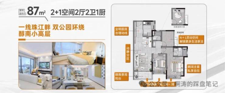 【主推户型】:建面约87㎡/104㎡/125㎡荔湾醇南瞰江小高层 实景现楼,所见即所得