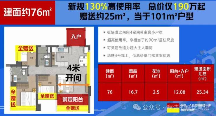 阳台、飘窗、花池N处赠送空间,所有户型阳台率20%,这个数值放到全广州,都少有对标者。加上官方严控空间赠送率,阳台率控制20%,恐怕也无后来者能超越。
