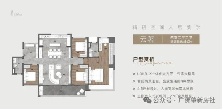 建面约143㎡四房两厅两卫;