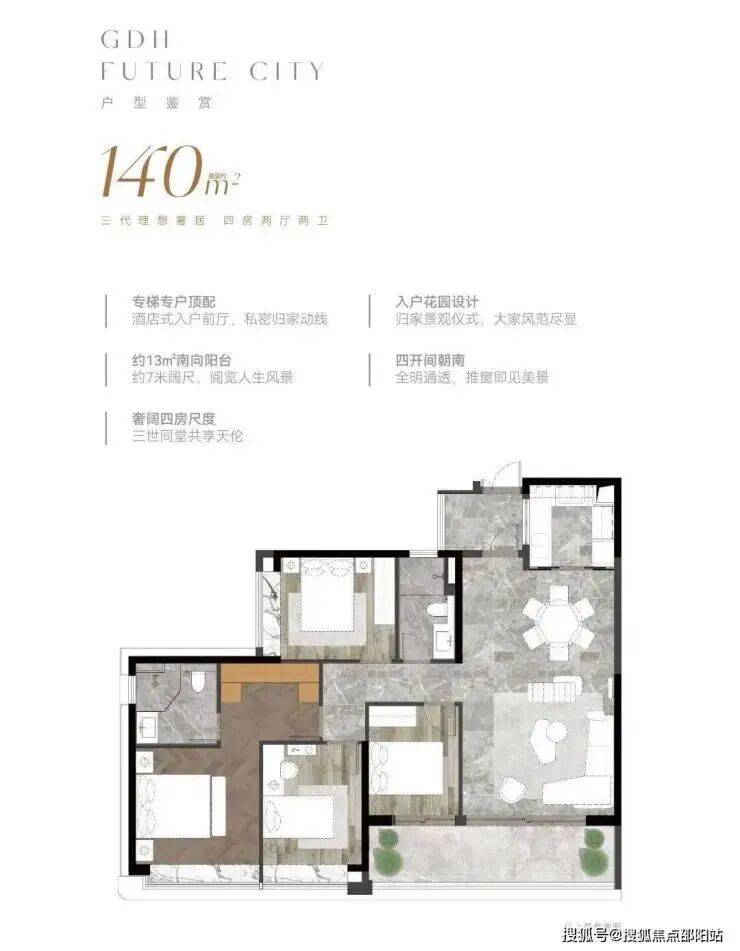 超20米连续采光面,户户均配大尺度面宽阳台。