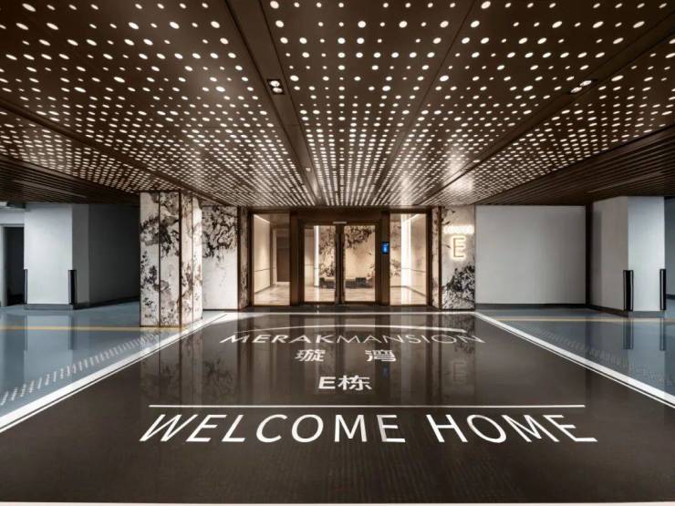 约6.4米高的首层归家大堂、地下车库大堂,都采用了大量奢石的铺设,带来顶奢酒店式的归家体验。