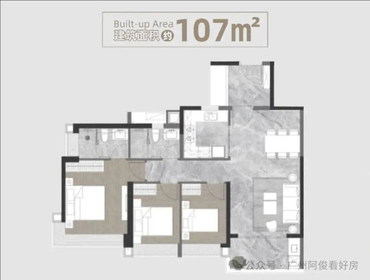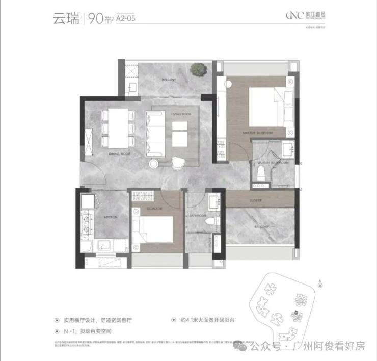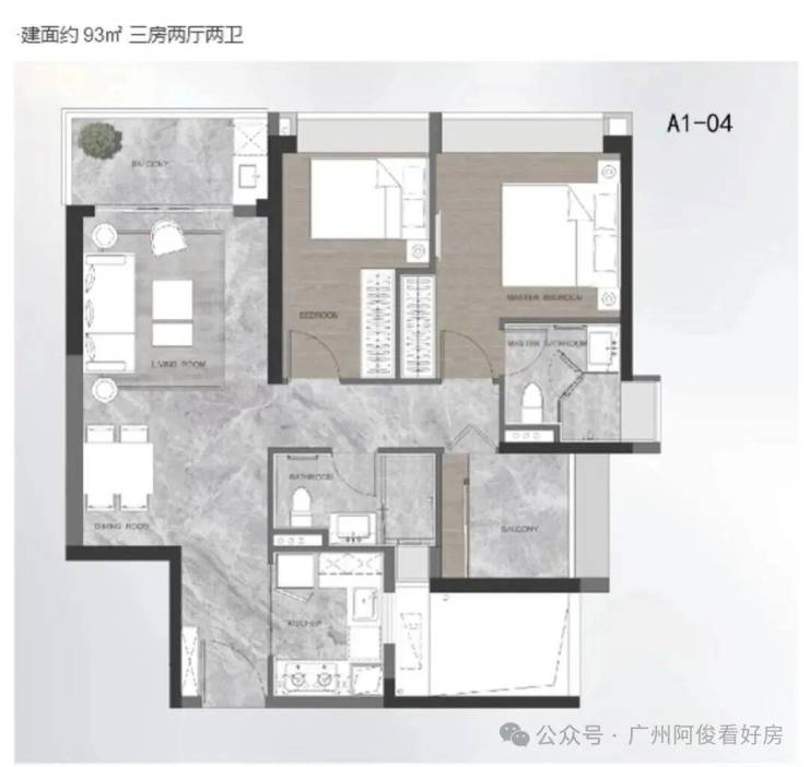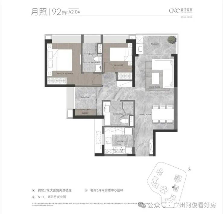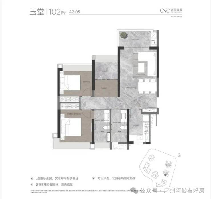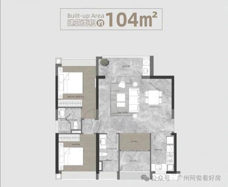 104㎡三房:770万起,横厅+4.45米阳台,性价比首选。