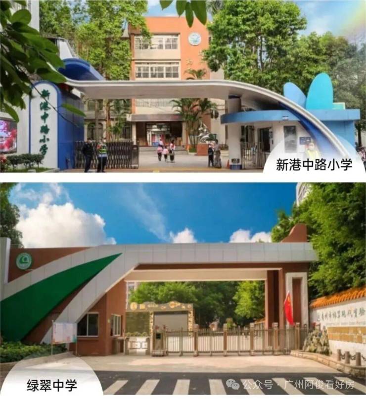 对口新港中路小学(普通公立),无配建学校,初中直升绿翠中学(非顶尖名校)。