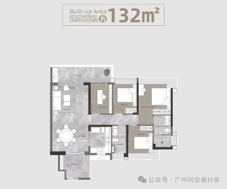 132㎡四房:1300万起,14米面宽+270°飘窗,塔景江景双资源。