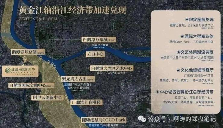 2、商业:项目地块处于白鹅潭沿江带,区位不错又有江景,距离万象城1个站,太古里2个站,前者26年正式开业,后者年底就会有首开区先开业。