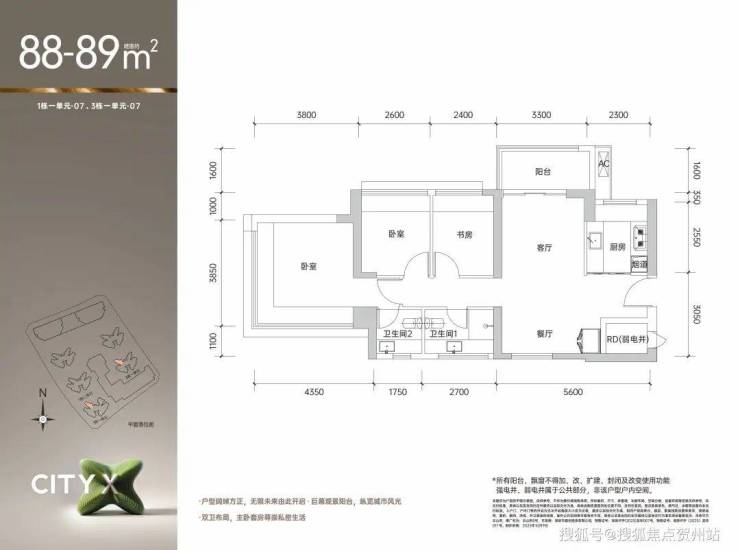 🏆 王炸户型 约89㎡3+1房2厅2卫🏆