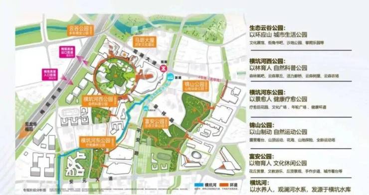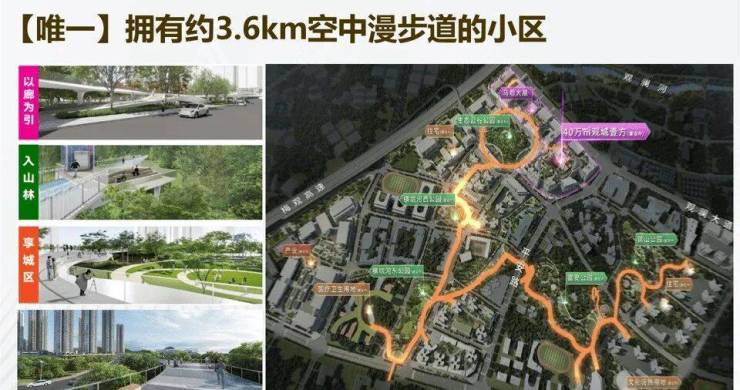 深圳独创规划超3.6km空中连廊,串联5大公园,商业,住区、办公、文化休闲、生态康养等多个特色主题环游路线,超23公顷的生态公园,奢享密度比肩香蜜湖 。