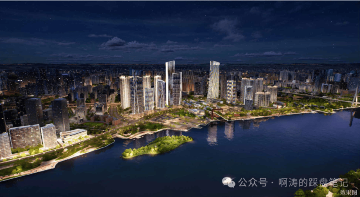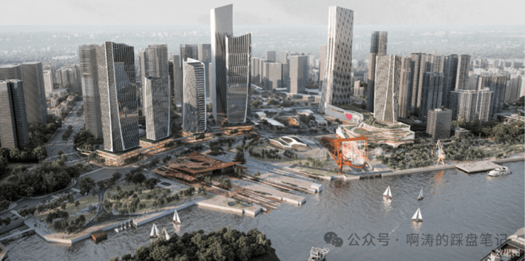 区域规划Aedas、园林景观Swa、建筑大师隈研吾、室内设计CCD&梁志天,首创站城一体、园城一体、水城一体的“三体合一”理念,打造涵盖总部双子塔、大型商业、住宅、超星级酒店、公园、学校、演艺中心、图书馆、博物馆、TOD轨道等多元业态的综合体,迭新滨水大城生活方式。