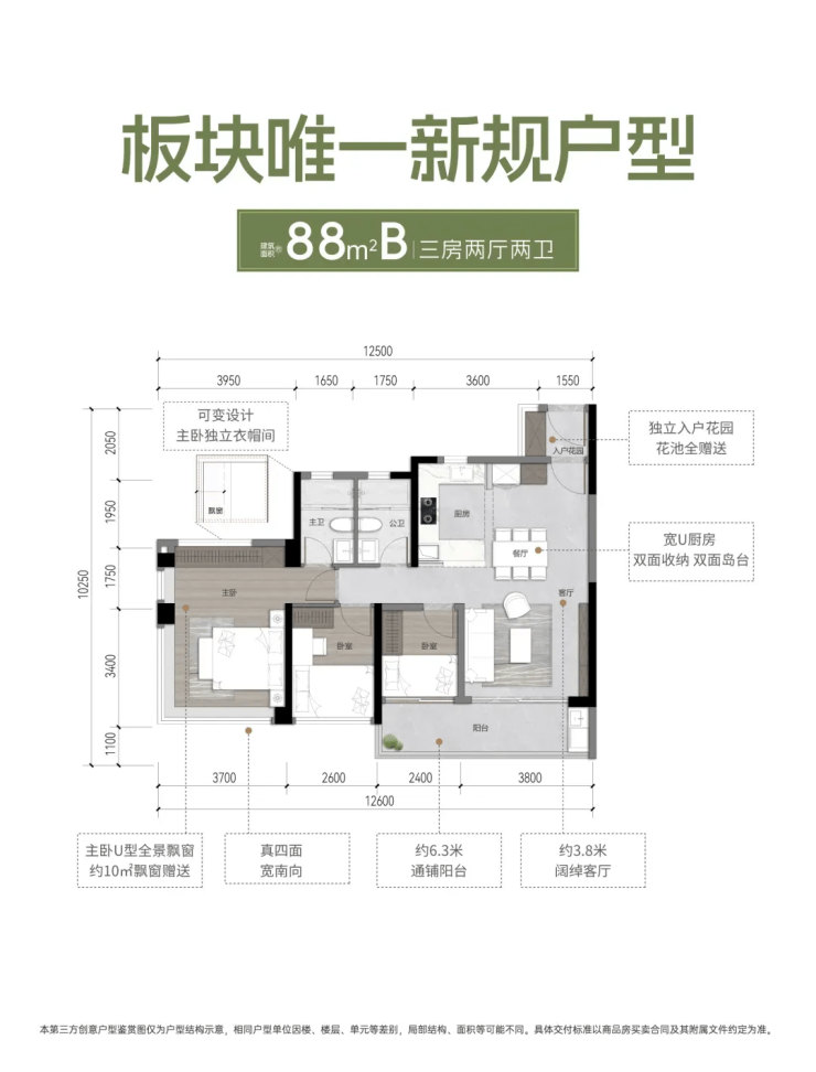 檐屿城是属于超新规产品,就是可以把全部飘窗都打掉,使用率大概能去到120%。而且部分楼层,可以做到变异户型,比如说88B,如果是变异户型,就多4个方,主卧可以增加一个衣帽间。其户型设计在整个番禺同价位的楼盘里面,是非常能打的。