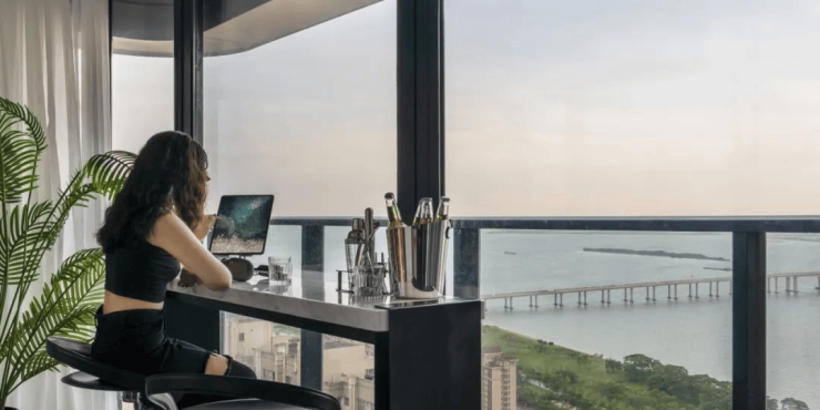 A5栋凭借全盘至近海距离,独享270°无遮挡瞰海视野,直面狮子洋壮阔潮涌与明珠湾大桥地标盛景。约7.2米IMAX级南向天幕阳台,每日可拥海上落日熔金的浪漫奇观,更可俯瞰滨海超级堤与邮轮母港的璀璨灯火,实现“推窗即海,入夜观星”的诗意栖居。