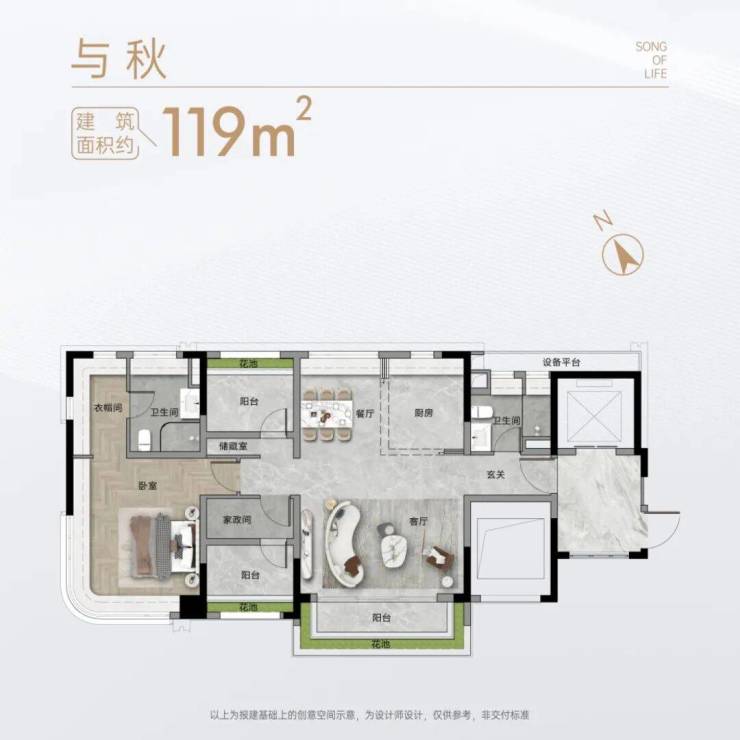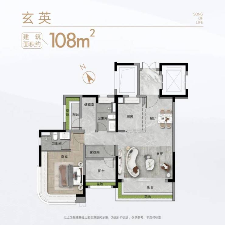 ┄ 约108-120㎡南向低密舒适创意空间 ┄»2T3户设计,城芯难得低密»朗阔起居空间,独立景观视野»同等品质交标,奢适居住体验