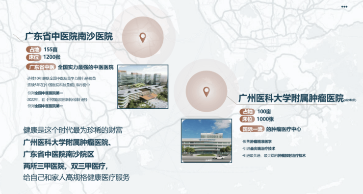 七所三甲医院+建设2个国家医学中心(代表国内最高临床医院水平,目前广州只有1个:广州医科大学附属第一医院)