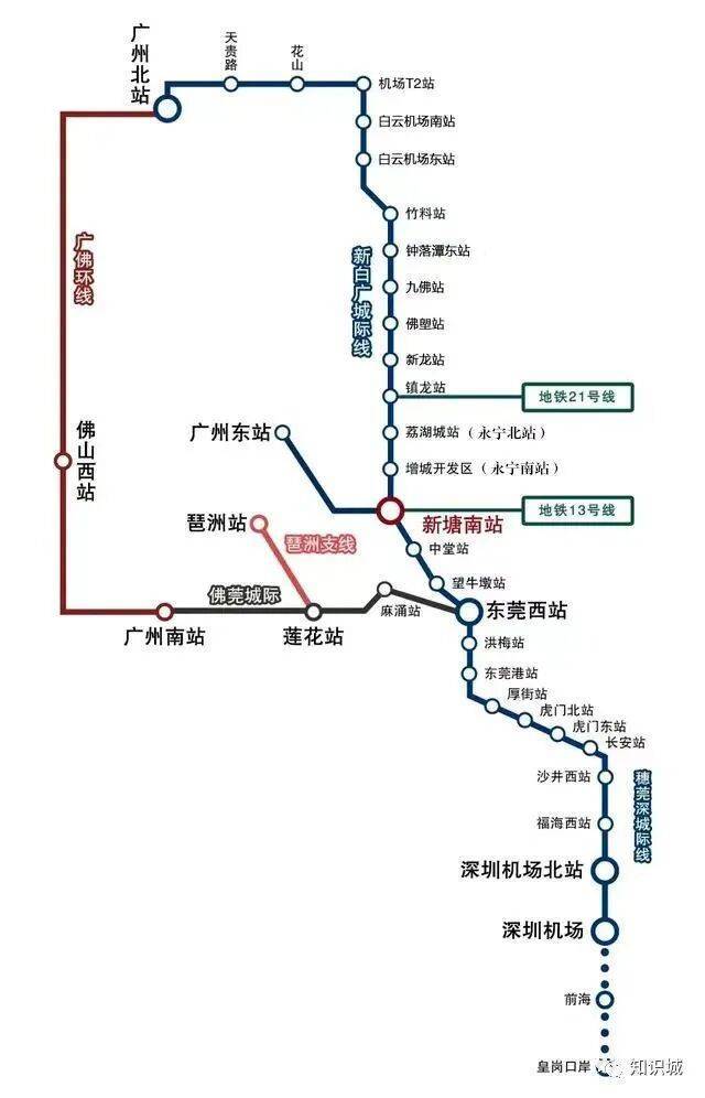 新白广城轨(在建中)1站白云机场,南向通达东莞和深圳。