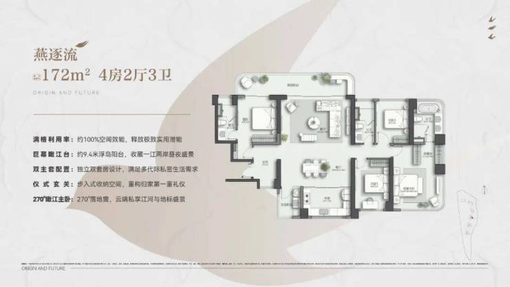 首推Ⅰ期约139-330㎡全景舱大平层,采用“栋栋望江+270°环幕视野”设计,阳台赠送率高达30%,户型使用率超100%,实现空间极致利用。灵动楼栋排布勾勒城市天际线,整合休闲社交、垂钓趣味、滨江跑道等四轴空间,构建沉浸式滨水生活圈。双悬浮式会所集高端SPA、无边界泳池、定制私宴厅等5大功能空间于一体,满足高定圈层需求。
