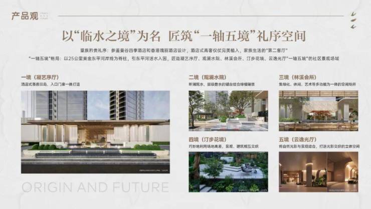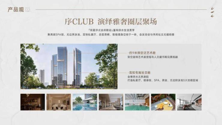 社区以40米开阔大门、大面积玻璃立面、自然奢石打造水岸美学地标,引东平河活水入园,匠造“凝艺序厅、观澜水院、林溪会所、汀步花境、云逸光厅”一轴五境景观场域,搭配滨水咖啡厅、书吧、云溪钓台等节点,形成“推窗即江、下楼入园”的生态体验。礼序管家服务围绕6大动线、29个触点,搭建“黄金品质、倾心五感、私属尊贵、极致生活”四大服务体系,实现全周期品质生活。