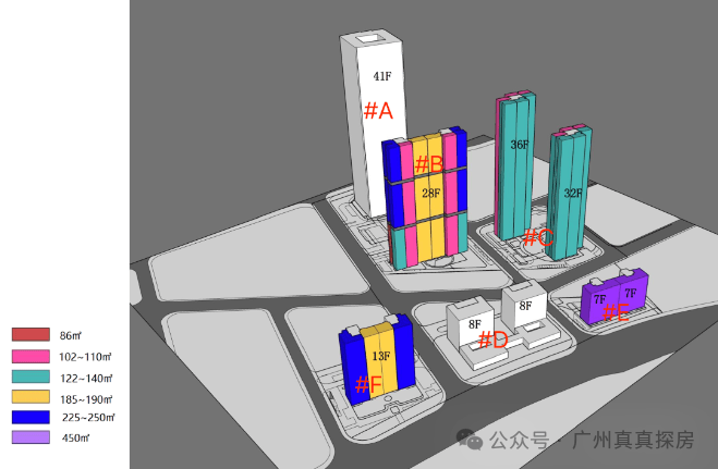 【总规划】A、D地块为写字楼,剩下的B、C、E、F地块为大平层公寓产品