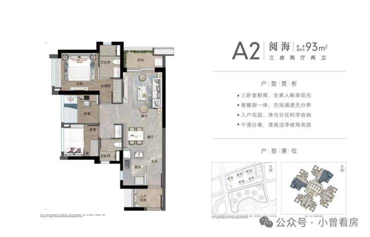 约93㎡南向3房,约93㎡北向3房。
