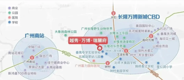 越秀瑞麓府就在番禺长隆动物世界西南侧,是越秀地产和长隆集团联手打造的项目,妥妥的长隆万博CBD核心范围,能直接蹭上板块扩容和产业集聚的红利。