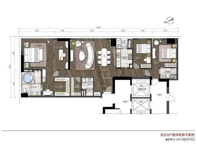 户型面积:240m²(4+1房2厅3卫);270m²(4+1房2厅5卫);320m²(5房2厅6卫);320m²(3+1房2厅4卫)