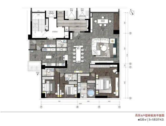 项目规划:白云之窗是白云新城核芯地标综合体,B塔为36层高、主力户型超300m的精奢大平层