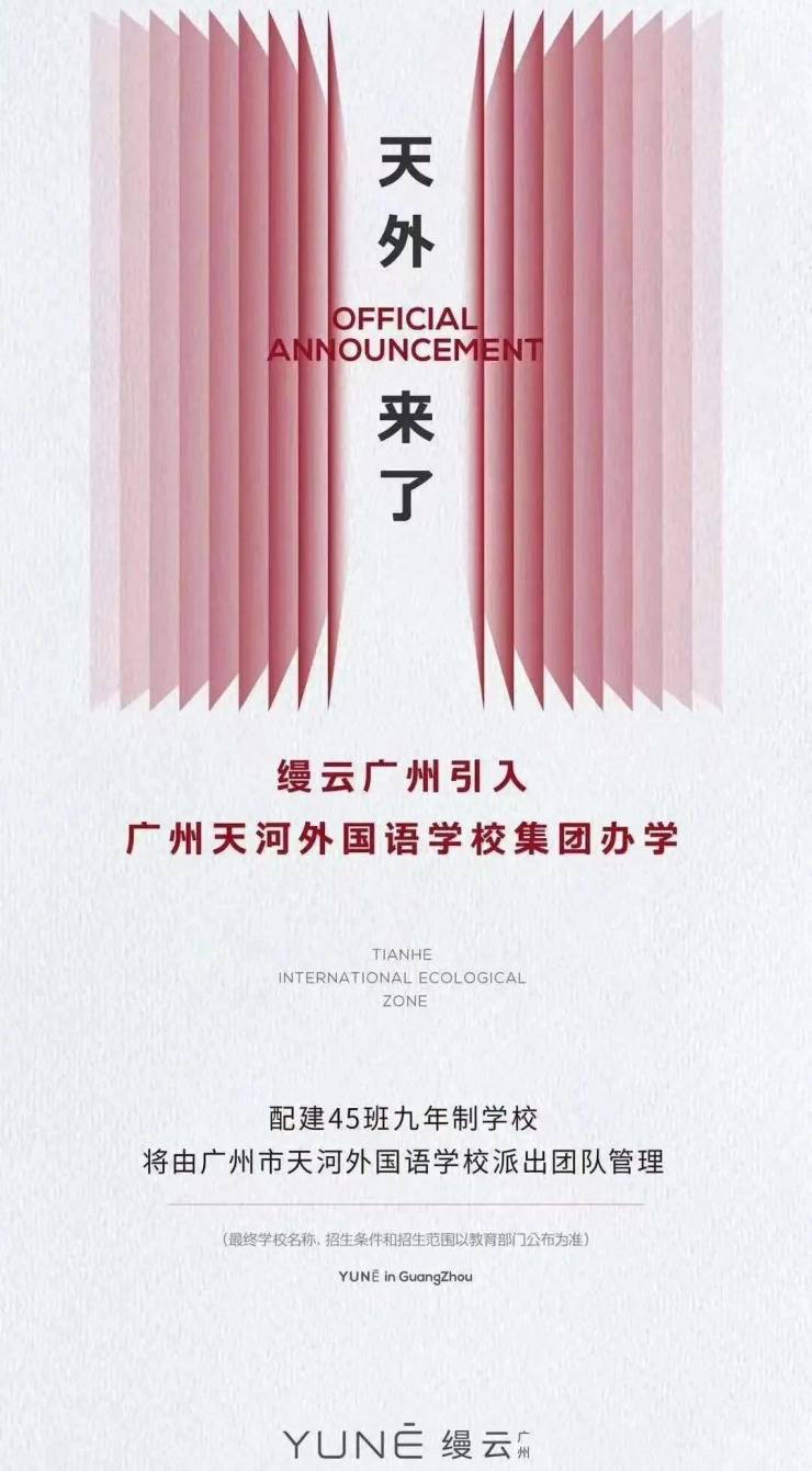 高端人居市场罕见的社区内自带全线12年公立教育配套---幼儿园、18班小学、27班初中, 规模不算大,家门口就是学校,足够方便,已经确定引进了天河外国语学校办学,瞬间吊打了天河东的一众项目,并确定2025年9月开学。