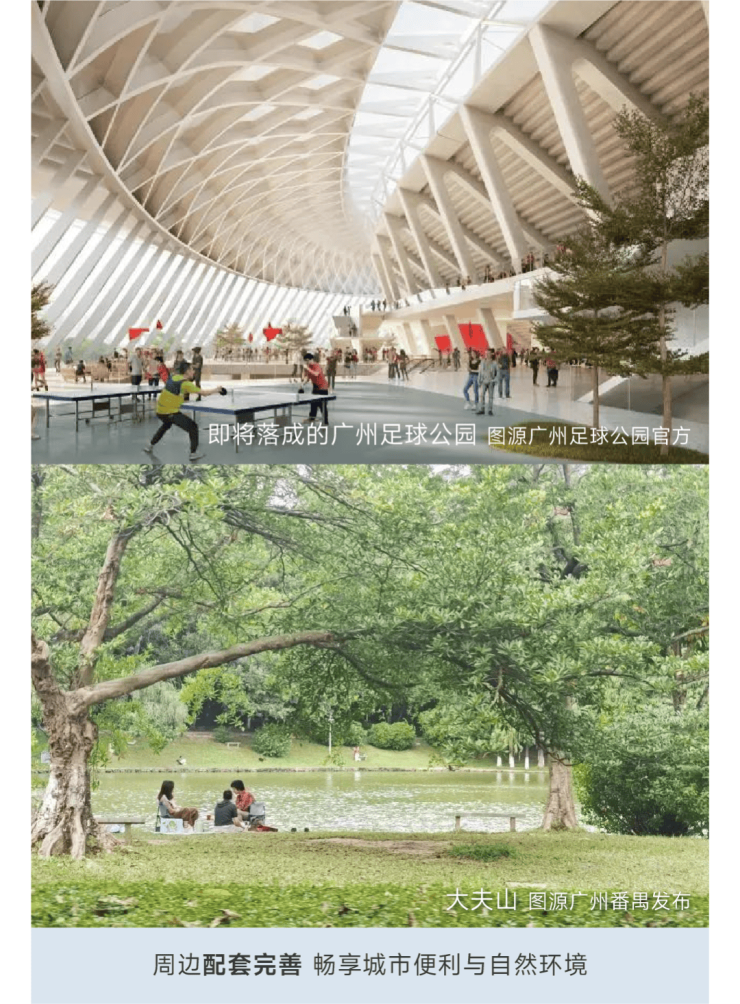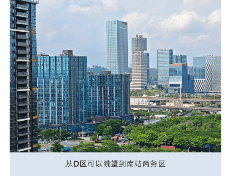 这样的生活图景,正随着城市配套的成熟而日渐清晰。如今从D1栋可以看见窗外绿树成荫的幸福涌和南站周边的公园,下楼即可拥抱自然;十几分钟步程就能抵达广州足球公园体验各式各样的运动、或者到长隆度假区畅玩看马戏表演,周末行程丰富。从北阳台看过去,新建的写字楼已成片崛起,广州南站商务区已现雏形。