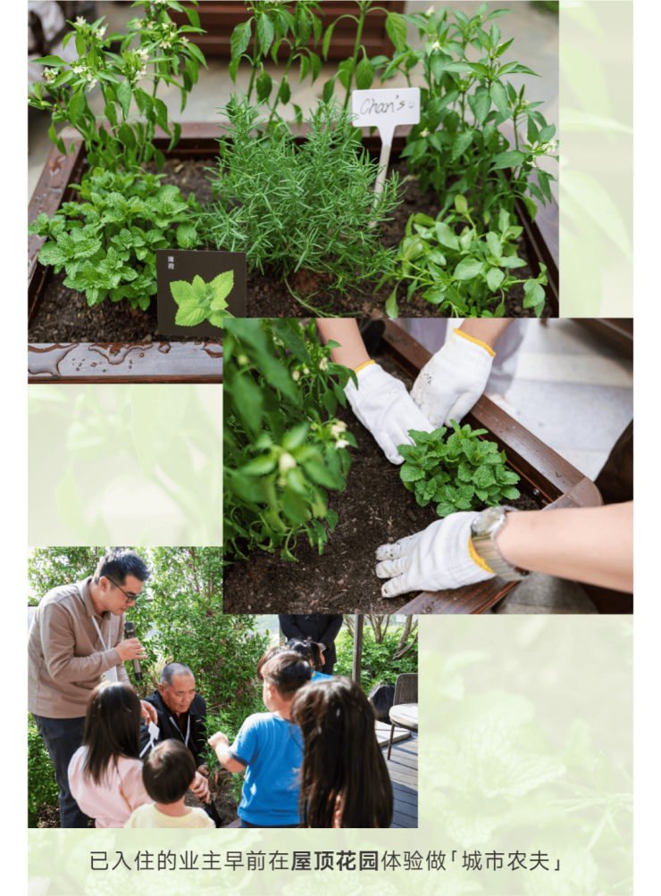 三楼天台的屋顶花园,由业主种下的植物已经抽芽,弥漫着迷迭香与薄荷的香气。这里的植物科普园,未来不仅是孩子们的自然课堂,更将成为邻里社交的秘密花园。随着交付和入住,还会有更多不同的圈层活动在这里展开,共享社区美好生活。