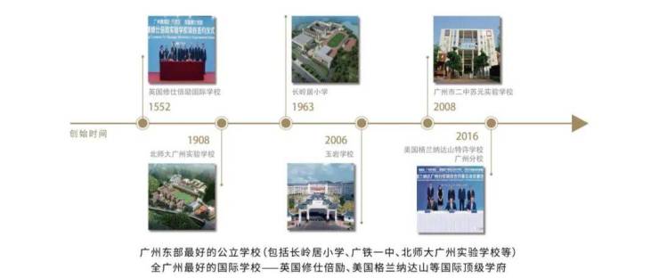 长岭居小学、北师大广州实验学校(小学部)提供基础教育服务,并且初中阶段可通过摇号方式进入三所名校之一学习。