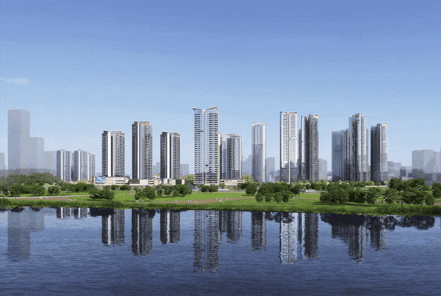 其总建面约90万方,汇聚购物中心、总部办公、高端住宅、配建学校/幼儿园、康养中心、生态公园等多种功能