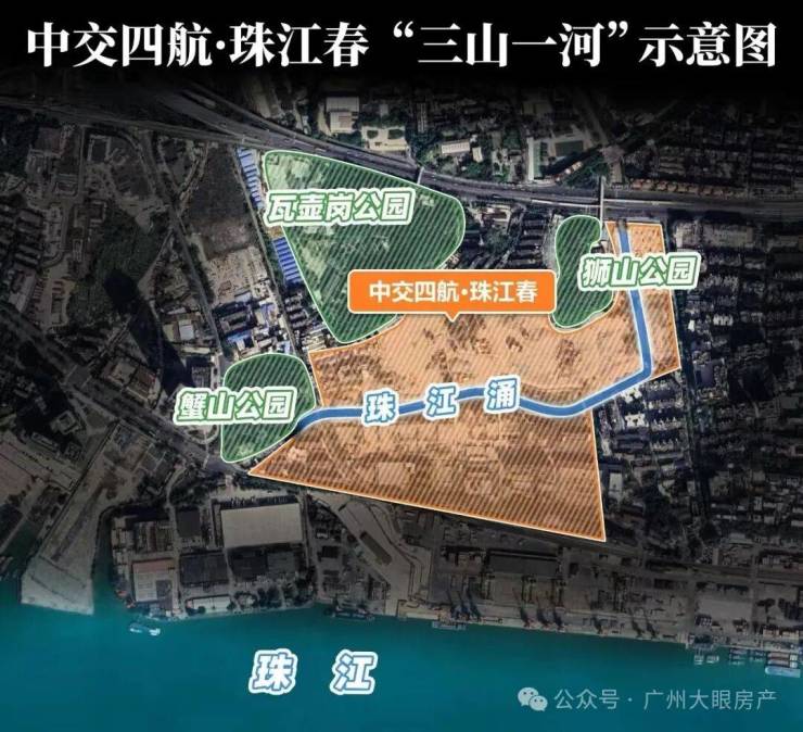 形成一个“三山一水”的自然景观格局,相当于做到内有河涌滨水园林,外有公园、山景与江景的立体生态。