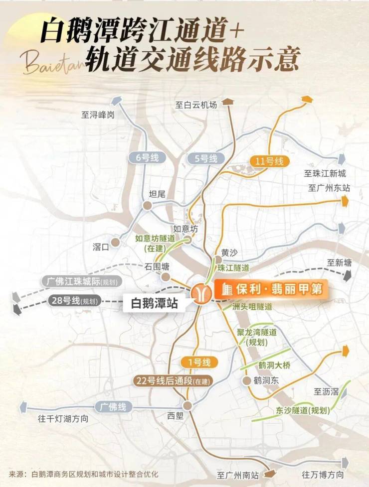 政府还规划了多条过江隧道,立体化交通网络将白鹅潭打造成广州未来旅游目的地和国际消费中心城市的核心引擎。