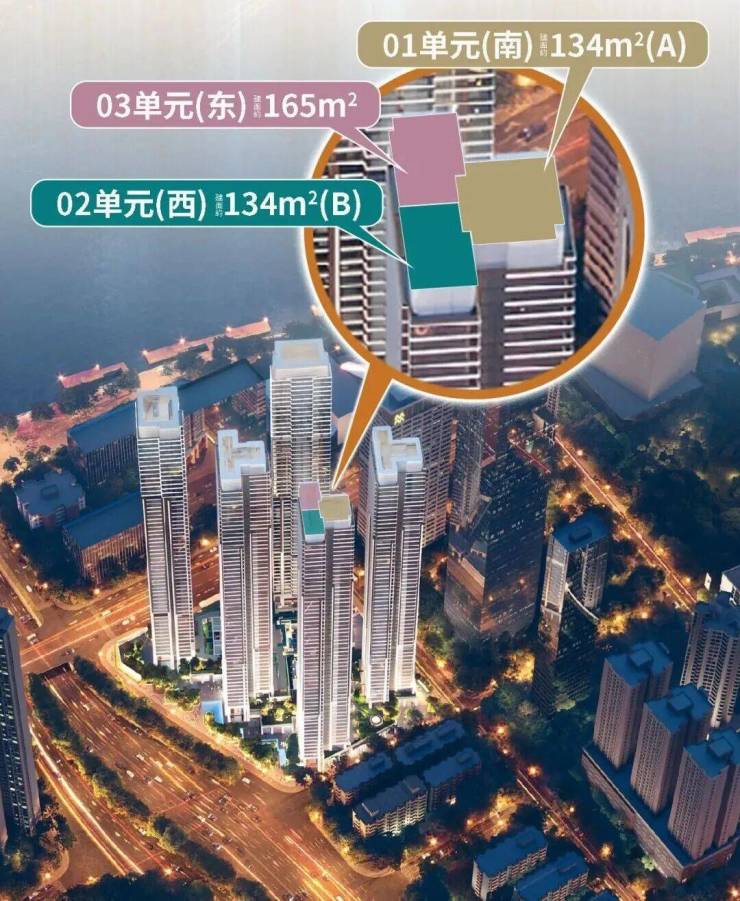 共5栋楼,总高56-58层,推1/4/5栋,1栋57层,43层以下是两套175方的,45-57层是一套246方的,5栋是塔楼,一户139,两户163,超新规产品,得房率130%。