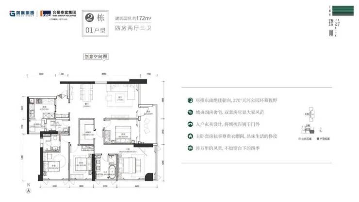 项目地处天河核心区,景观资源优越,东向 300 米直面天河公园,高楼层可南向眺望琶洲 CBD,尽享繁华与美景。