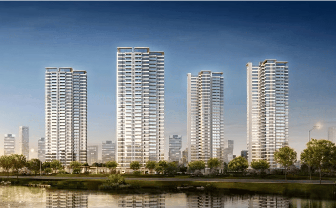 艺术外立面镌刻天际地标近270°转角大飘窗、超高窗墙比、约50mm精工金属线脚,通透质感、挺拔造型,打造屹立江岸天际的美学地标。