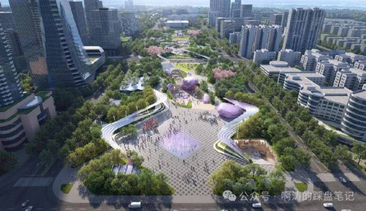 番禺广场以TOD复合型城市发展模式为核心,规划“地下商业+地上公园”的立体空间,打造钻石喷泉广场、螺旋艺术展廊、宝石商业广场及翡翠绿阶等景观,以自然之链串联,呈现“大珠小珠落玉盘”的诗意画卷。