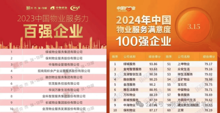 2024年中国物业服务满意度100强企业TOP1(克而瑞)