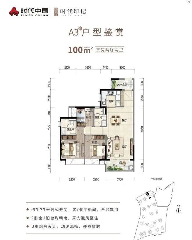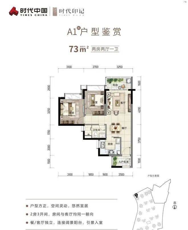 时代印记提供建面约 73㎡、88㎡、100㎡、105㎡、124㎡、136㎡的二至四房精工美宅。