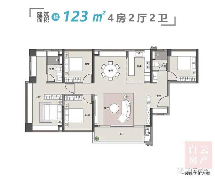 |建面约123平4房户型图