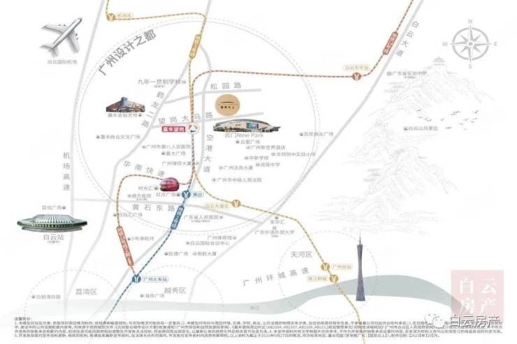 门口的空港大道作为白云重要的南北中轴线,全长约18.65公里,从南到北串联起白云新城总部集聚区、广州设计之都、临空产业组成白云的新中轴。