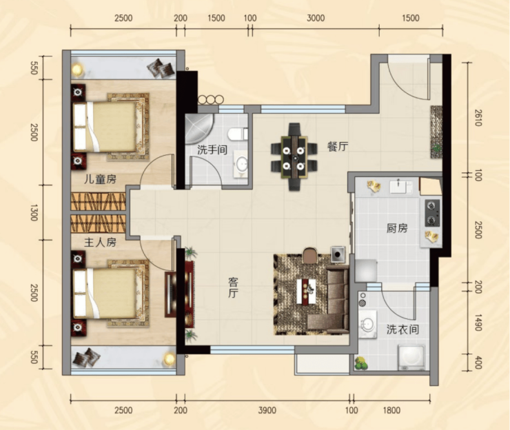 1️⃣ 69㎡ 两房两厅一卫