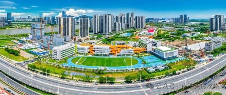 2. 教育资源密集:配建幼儿园、48班小学(2025年开学)、九年一贯制学校(2026年投用),5所学校环绕,毗邻湾区实验学校等优质教育资源。