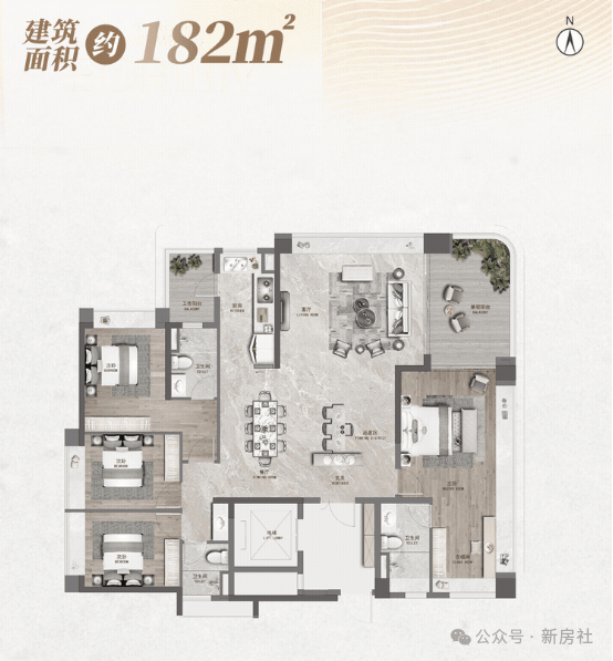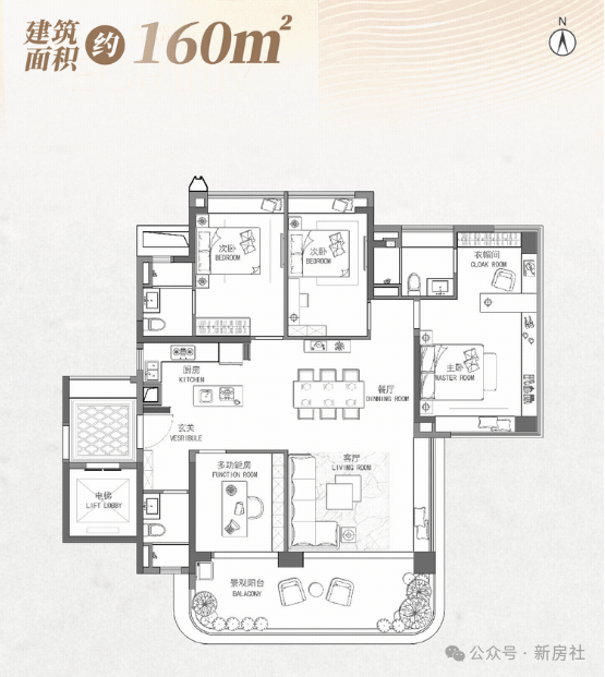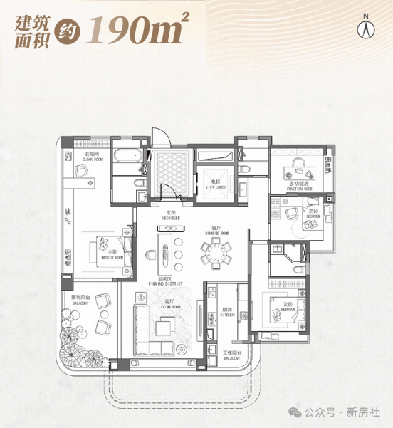3.打造约3.25-3.5米墅级层高,40%窗地比,超大空中花园、LDK客餐厨一体设计,部分户型配备双空中观景庭院,观景视野开阔,居住体验感强。