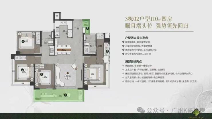 同样是南北对流的四房户型,做到了4.5开间朝南。