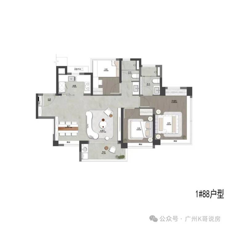 南北对流双阳台的户型,超宽阳台和超宽客厅,尺度感很强。