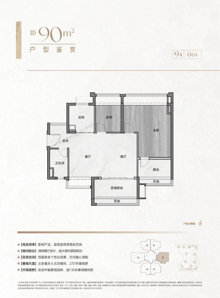 90㎡3房2卫(南北对流):空气流通超舒服!实际用着堪比旧规106平,居住体感直接拉满;