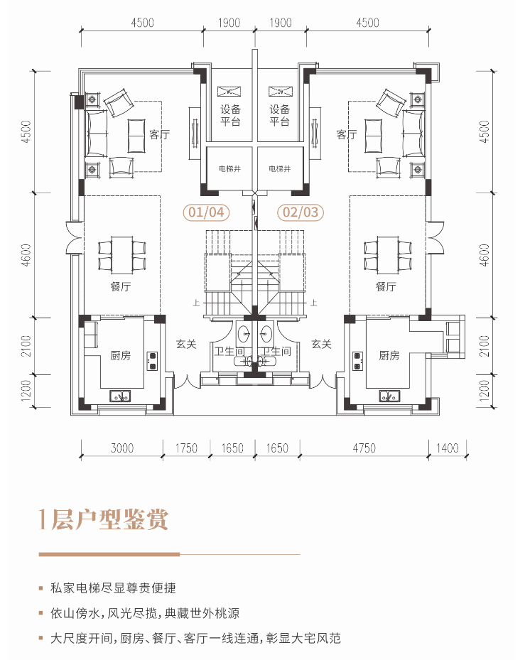 亲水院墅,藏天纳地,依山傍水,风光尽揽。四层奢适空间,动静分区,景观与私密共融,典藏室外山湖景观。配备私家电梯,超大露台,大尺度开间与约5.25m挑高相结合,彰显大宅风范,为城市绅贵量身定做,理想生活不过如此。