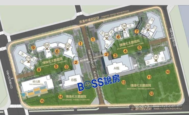 项目规划:共9栋,其中7栋住宅,2栋类住宅公寓,一所6班幼儿园,一所2班托儿所,小区主出入口设底层商铺,绿化率≥30%,小区南向2个开发商代建公园。